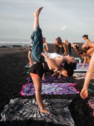 Yoga Teacher Training (YTT) included an array of training exercises like beach yoga challenging your muscles to balance in a new way.